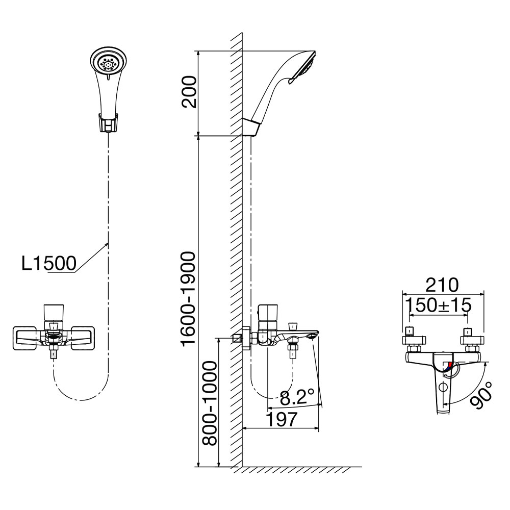 Bản vẽ kỹ thuật Vòi sen tắm VIGLACERA VG536 nóng lạnh