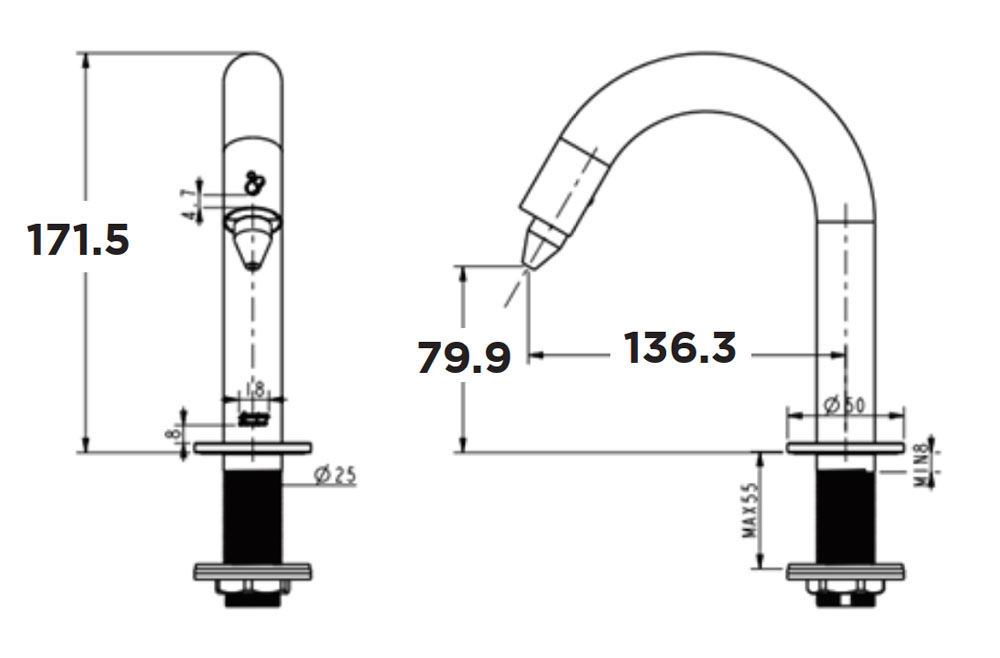 Bản vẽ kỹ thuật Vòi xịt xà phòng AMERICAN STANDARD WF-8102 cảm ứng