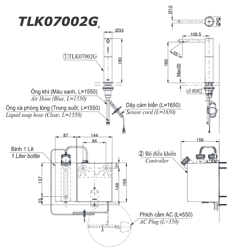 Thông số và tính năng Vòi xịt xà phòng tự động TOTO TLK 07002G