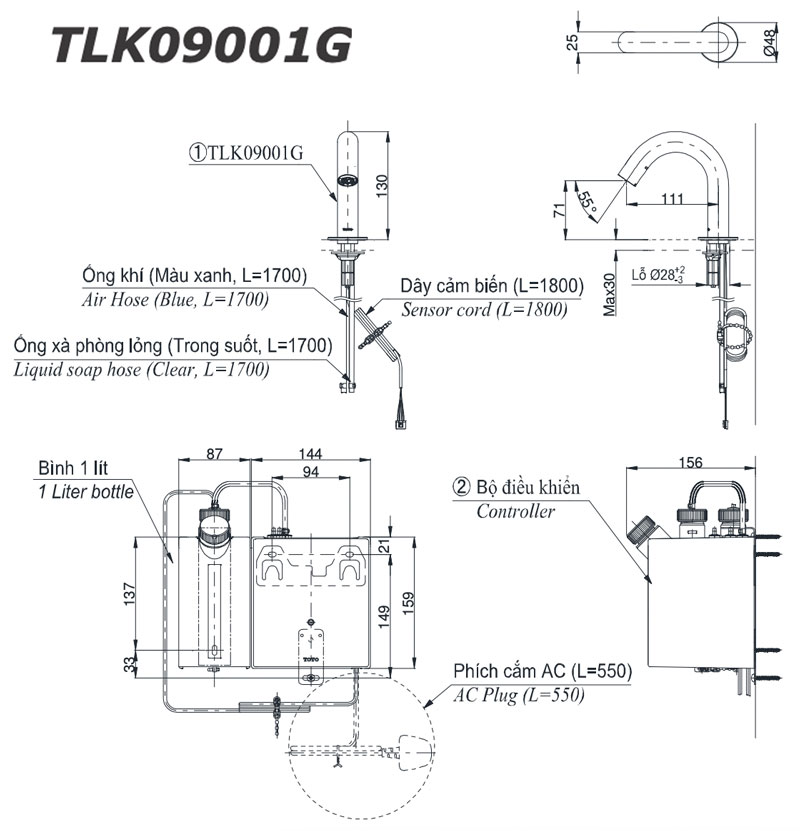 Thông số và tính năng Vòi xịt xà phòng tự động TOTO TLK 09001G