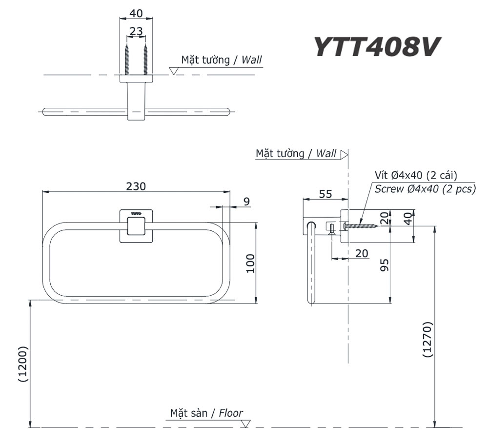 Thông số kĩ thuật Vòng treo khăn TOTO YTT-408V